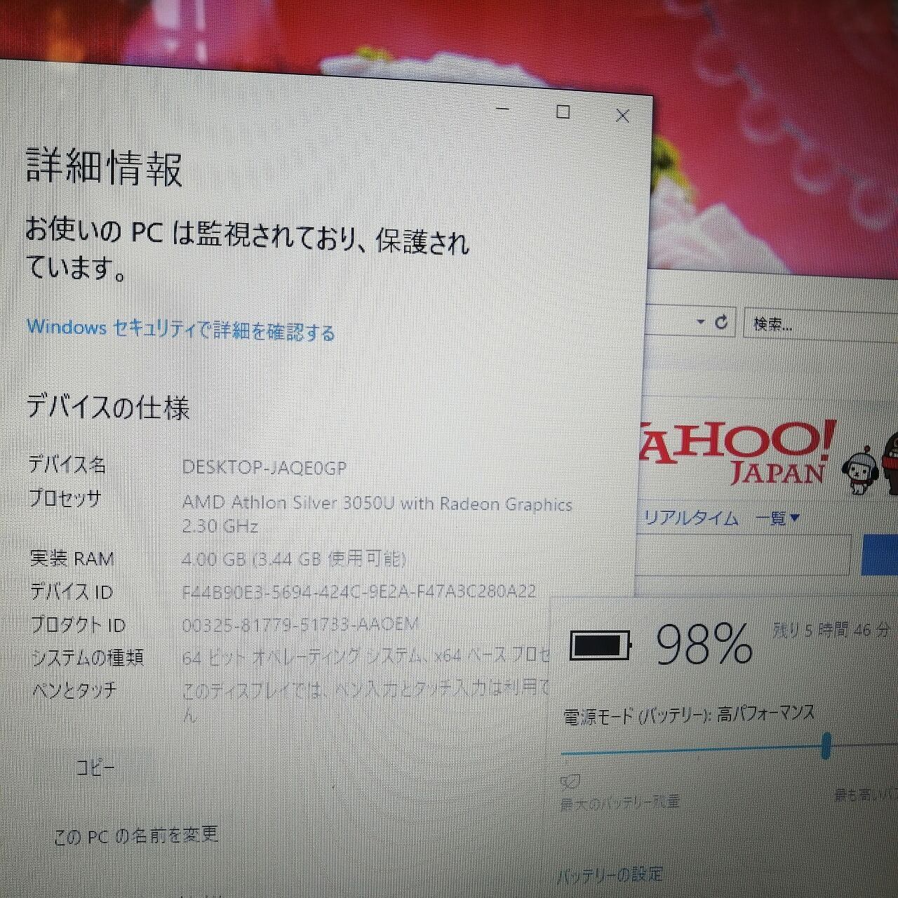 Windows Defender インストールされていますので、ウイルス対策も安心です♪
