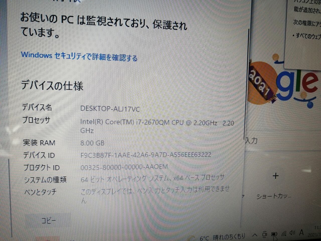 Windows Defender インストールされていますので、ウイルス対策も安心です♪