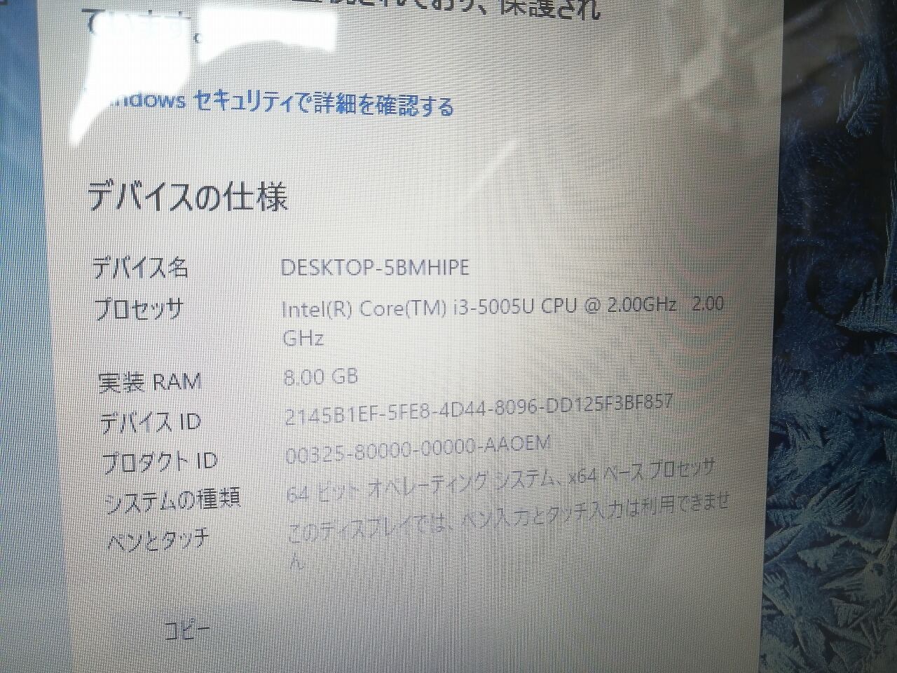 Windows Defender インストールされていますので、ウイルス対策も安心です♪