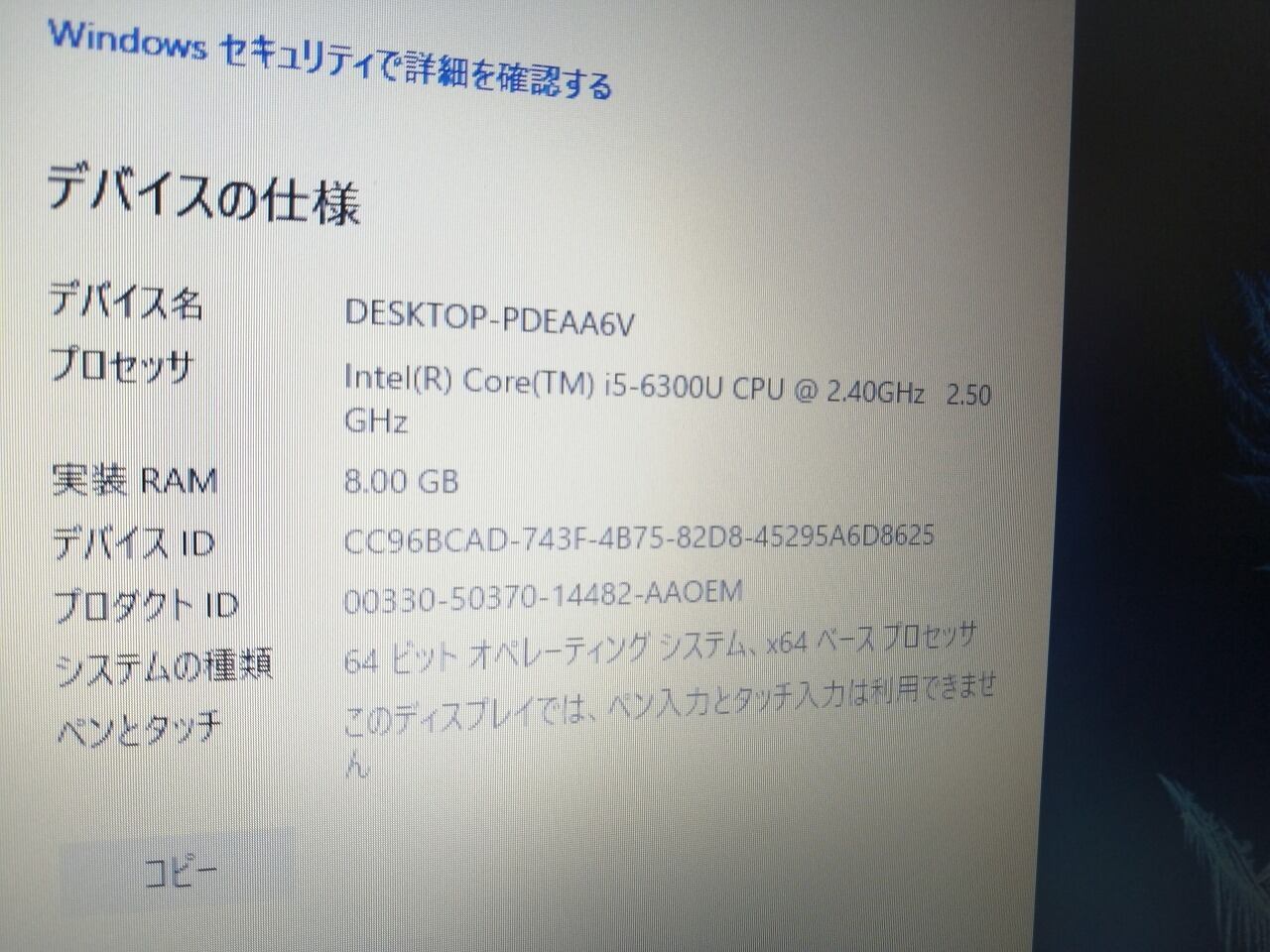 Windows Defender インストールされていますので、ウイルス対策も安心です♪