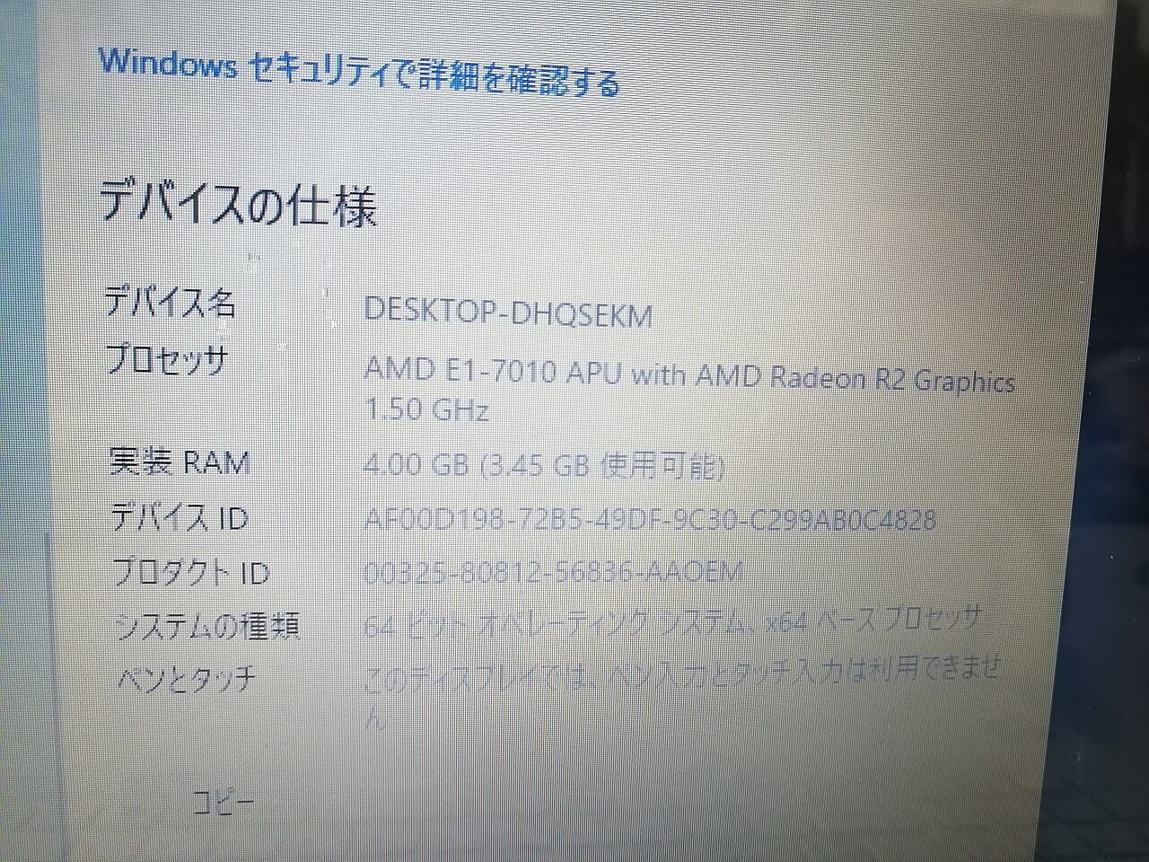 Windows Defender インストールされていますので、ウイルス対策も安心です♪